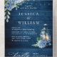 Invitation Tout En Un Mariage QR bleu Hydrangea Lantern Wood