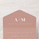 Un rose/mauve minimaliste et moderne poussiéreux tout en un faire-part de mariage, conçu avec la typographie blanche et le texte voûté. Personnalisez avec toutes vos informations futures sur le mariage et les informations RSVP.