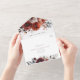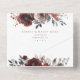 Invitation vos invités dans le style avec ce tout-en-un faire-part de mariage avec une section RSVP déchirante. Le design est agrémenté d'une aquarelle fleurie, avec de riches tons marsala et des accents de rousseur, d'ivoire et de sauge. Les fleurs, magnifiquement crénelées pour apparaître comme fraîchement cueillies dans un jardin d'automne, sont en cascade dans les coins de la carte, fournissant un cadre dynamique pour les détails de l'événement. Cette carte est parfaite pour toute saison, mais surtout idéale pour les mariages d'automne et d'hiver, offrant une touche de splendeur naturelle combinée à la commodité d'une carte de réponse détachable.