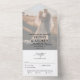 Elégant design moderne photo blanche RSVP All in One Invitation. Le design comprend votre photo, les détails du mariage, RSVP, et l'adresse de retour. Personnalisez-le avec vos informations. Afficher les produits correspondants de cette collection.