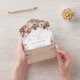 J'ai bien reçu ma commande tout et était parfait jusqu'à se que je retourne mon faire part il on pas cadré le papier à l'impression. Je pensé que c'était de ma faute, mais sur ma réalisation sa n'apparaît pas, j'avais fait faire 1 seul prototype pour essayer, on aime beaucoup le style, la matière... j'aimerai bien recommander mais pas avec ce petit défaut. .