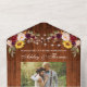 Mariage rustique, aquarelle Bourgogne Floral, Bois et String Lumières Mariage photo All In One Invitation avec RSVP Card inclut des roses bordeaux, roses roses roses, roses rouges, tournesols et verdure botanique.