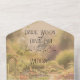 Une belle image défraîchie d'un chemin de jardin, de fleurs et d'arcade sous le texte sur cette faire-part de mariage. Jolie et paisible scène extérieure dans les tons rustiques terreux.