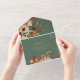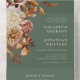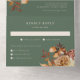 Sage Mariage All in One Invitation. Cette élégante faire-part de mariage tout-en-un présente des feuilles d'aquarelle peints à la main, orange brûlé et terre cuite, des dahlias crème et beige, et de beaux roses de couleur rouille sur un arrière - plan vert sage. RSVP avec choix de repas est inclus avec cet invitation élégant. Trouvez les articles correspondants dans la collection Sage Autumn Romance.