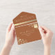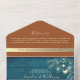 Célébrez votre amour avec un mélange d'élégance moderne et de charme bohème. Notre invitation de mariage tout-en-un capture l'essence d'une romance rustique avec des accents de bois sarcelle et de terre cuite, ornés de délicates dentelles florales dorées. L'ajout d'une photo personnalisée du couple au dos ajoute une touche personnelle, tandis que la simplicité du design maintient une atmosphère d'élégance. Personnalisez-la avec votre propre photo, les détails du mariage et la réponse pour une invitation qui reflète parfaitement votre histoire d'amour unique.