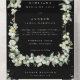 Une invitation de mariage combinée noire et carte de réponse à événements multiples. Avec des snowberries peintes à la main et des tiges d'eucalyptus disposées en de beaux éléments botaniques et cadre sur fond noir. Tout le texte est entièrement modifiable, et les points dispersés sur l'avant et l'arrière peuvent être supprimés avant la commande si vous le souhaitez. Veuillez consulter cette Collection dans ma boutique pour des versions de ce produit avec des options de formulation alternatives, dans différentes couleurs et pour des articles de coordination.