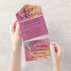 Fleurs de couleur de l'eau, mariage. Tout en une invitation. Couleurs douces et superposées d'un arc-en-ciel de couleurs. Tous les éléments de conception peuvent être modifiés (déplacés, redimensionnés, supprimés, dupliqués, pivotés, etc.) des deux côtés de l'invitation. N'hésitez pas à éditer pour en faire votre propre invitation unique et spéciale pour votre jour de mariage ! Personnalisez en supprimant du texte et en ajoutant vos propres mots. Utilisez la couleur, la taille et le style de police préférés. Invitation tout-en-un mariage ou utilisation pour tout événement de célébration! Style : All in One Wedding Inviter Les invitations personnalisées All-In-One sont une combinaison unique d'une invitation personnalisée magnifiquement imprimée avec une carte postale RSVP perforée facile à déchirer. Et ils sont si faciles à utiliser ! Il suffit de plier, puis de sceller le rabat arrière avec les trois autocollants clairs inclus, et le courrier. Et quand vos invités reçoivent votre invitation personnalisé, ils déchirent la carte RSVP perforée et vous la remettent dans le courrier ! Dimensions : plié de 5,6 po x 4,5 po, déplié de 5,6 po x 12,125 po Facile à détacher Carte postale RSVP perforée de 5,6 po x 4,25 po; taille de carte postale USPS qualifiée Aucune enveloppe nécessaire pour l'expédition - Sceller et envoyer! Deux stocks de cartes papier de haute qualité au choix ! Deux options d'impression disponibles : Standard et Haute Définition Comprend trois autocollants ronds clairs pour sceller le type de papier fermé : Matte A classique, tout autour du papier avec une sensation naturelle et une finition mat non enduite; notre Matte standard résiste à l'épreuve du temps. Élégant et discret, avec des couleurs douces et subtiles. Épaisseur 17,5 pt / Poids 120 lb / 324 GSM Finition claire blanche, non revêtue avec une texture en coquille d'oeuf Le papier est facile à écrire et ne sera pas fabriqué et imprimé aux États-Unis
