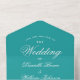 Invitation Tout En Un Mariage turquoise Élégant Script Calligraphie Bleu