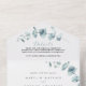 Cette mariage minimaliste et verdoyante, tout en une seule invitation, conviendra parfaitement à un mariage rustique. Le design présente de beaux feuilles peints à la main dans un vert clair. Enregistrez du papier en incluant plus de détails dans l'invitation plutôt que sur une carte de boîtier séparée.