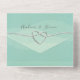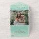 Elégante, minimale, calligraphie moderne, simple, moderne sauge vert tout en un faire-part de mariage avec un faux coeur de corde en argent et image personnalisée du couple à l'arrière. Ajoutez votre photo, les détails du mariage et rsvp.