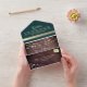 Invitation Tout En Un Mariage vert émeraude en bois rustique