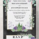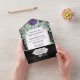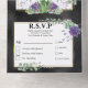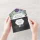Une belle aquarelle avec des succulents dans les tons violets, verts et roses contre un arrière - plan noir imitant sur lequel reposent de jolis faux diamants.  Le tiers inférieur a une carte de réponse déchirante avec adresse rsvp personnalisée pour vos invités à compléter. Elles sont idéales pour n'importe quel pays ; extérieur; boho ; jardin ou mariage extérieure.