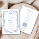 Élevez votre papeterie mariage avec cette invitation victorienne tout-en-un bleu poussiéreux, alliant élégance intemporelle et commodité moderne. Doté d'un délicat motif floral, d'une calligraphie de script gracieuse et d'un monogramme raffiné, ce design plié inclut votre invitation, les détails RSVP et le code QR dans une pièce cohésive. Idéal pour le printemps, l'été ou le mariage de automne avec un thème romantique d'inspiration vintage ou française. Parfait pour les couples à la recherche de charme boutique à un prix abordable.