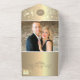 Élégant, vintage, faux feuille d'or tout-en-un faire-part de mariage avec dentelle florale, script de calligraphie moderne et image du couple. Ajoutez votre photo, les détails du mariage et rsvp.