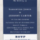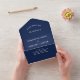 Navy Blue All in One Faire-part de mariage. Invitations de mariage simples, élégantes et modernes. Customisez avec vos détails. Commandez à temps pour éviter une déception.