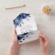 Marine et fleurs blanches faire-part de mariage avec accents de faux feuille d'argent.