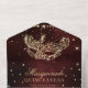 Un QUINCEAÑERA moderne, chic et glamour avec une parties scintillant en or dessinée à la main masque mascarade avec parties scintillant en or brille sur un arrière - plan d'aquarelle rouge foncé bordeaux avec rsvp le tout dans une seule invitation.