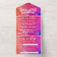 Mascarade Masque, rose, parties scintillant, aquarelle abstraite, Quinceanera All in One Invitation. Tri-fold élégant, chic, unique, invitations. Customisez avec vos détails. Commandez à temps pour éviter une déception.