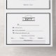 Ce Mariage classique noir blanc classique Choix du menu All in One Invitation donne le ton d'un événement sophistiqué et élégant pour le printemps, l'été, l'automne ou l'hiver. Le noir et blanc intemporel offre des détails polis foncés et contrastés de bordures chic et de style vintage - un look épuré qui peut vraiment présenter un look moderne minimaliste tout aussi facilement qu'un événement de luxe formel et embelli. Ce design imbibe une couture cravate noire/petite robe noire esthétique à votre journée spéciale.