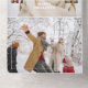 This modern, clean and unique holiday greeting card features four square photo templates with thin borders, editable text fields, and full background photo with border. All graphics and text fields are customizable. The panels feature additional text fields, floral graphics and a bonus tearaway photo.