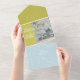 Invitation Tout En Un Modern Script Chartreuse and Blue Wedding