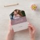 Le tout dans un faire-part de mariage avec votre photo spéciale et élégant nom de script signature et des initiales monogrammes sur un arrière - plan mauve. L'invitation comprend une carte RSVP perforée qui peut être adressée individuellement ou laissée en blanc pour que vous puissiez écrire à la main les coordonnées de votre invité. Conçu par Thisisnotme©