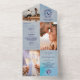 Invitation Tout En Un Monogram Crest 3 Photo QR Code Preppy Mariage bleu