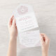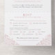 Invitation Tout En Un Monogramme aux feuilles de rose pâle et blanc de m