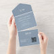 Monogramme bleu Dusty moderne Code QR Mariage RSVP All in One Invitation