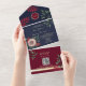 Élégant, rustique, bleu marine et bordeaux tout-en-un faire-part de mariage avec monogramme - initiales de mariée et mariée, fleurs roses rose or et photo personnalisée du couple. Ajoutez votre photo, votre site web et votre code QR - pour RSVP et plus d'infos.