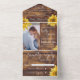 Invitation Tout En Un Monogramme de tournesol en bois rustique Mariage p