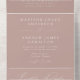 Faire-part de mariage tout-en-un élégant avec vos initiales monogrammes et les détails du mariage en texte blanc avec accents de script de calligraphie moderne sur un arrière - plan rose poussiéreux. Cette conception élégante et fonctionnelle comprend une carte RSVP détachable en bas qui peut être facilement envoyée par la poste à vous en tant que carte postale - aucune enveloppe requise. Un mélange parfait de beauté et de commodité pour votre journée spéciale.
