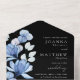 Invitation Tout En Un Monogramme floral bleu Mariage noir et blanc