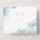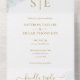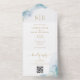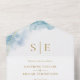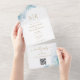 Invitation Tout En Un Monogramme or QR Code Mariage d'aquarelle bleu