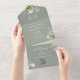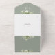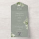 Ce chic faire-part de mariage fleuri tout en un peut être personnalisé avec vos initiales monogrammes et informations de mariage sur un arrière - plan vert sage. L'invitation comprend une carte RSVP perforée qui contient le code QR de votre site Web mariage. Conçu par Thisisnotme©