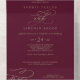 Ce monogramme romantique bordeaux mariage de code QR tout en une seule invitation est parfait pour un mariage simple. Le design classique moderne comprend des tourbillons fantaisistes et des fleurs fantaisistes avec une magnifique typographie de feuille d'or en faux champagne. Écrivez vos adresses d'invités à l'arrière de l'invitation pliée, ou achetez des autocollants de étiquette de adresse d'invités de coordination (vendus séparément).