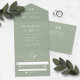 Monogramme simple & Script Mariage vert feuille légère tout en une invitation. Ce design d'invitation de mariage minimaliste moderne est simple classique et élégant avec une couleur solide et une jolie police de calligraphie de script signature avec queues. Montré dans la nouvelle Colorway. Ce modèle et invitation facile d'utilisation permet d'inviter et de carte rsvp ensemble. Pas besoin d'une enveloppe, tout est prêt à envoyer, il suffit de la plier et d'ajouter votre timbre ! Abordable et beau ! Disponible en plusieurs options de couleurs, ou n'hésitez pas à modifier les couleurs de l'éditeur (cliquez sur customiser plus loin tout en personnalisant) Pour en savoir plus, recherchez les collections mariages 2022 de Chic Paperie pour voir toutes les tendances des designs et des couleurs mariages pour cette année.