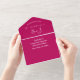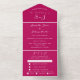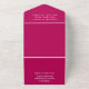 Contemporain, simple, magenta, fuchsia, rose chaud, moderne, élégant Mariage All in One Invitation. Calligraphie triple, minimum, simple, unique, invitation de mariage moderne. Customisez avec vos détails. Commandez à temps pour éviter une déception.