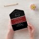 Contemporain, simple, noir et bordeaux, moderne, élégant Mariage All in One Invitation. Calligraphie triple, minimum, simple, unique, invitation de mariage moderne. Customisez avec vos détails. Commandez à temps pour éviter une déception.