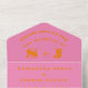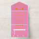 Rétro, simple, rose et orange, moderne, élégant Mariage All in One Invitation. Calligraphie triple, minimum, simple, unique, invitation de mariage moderne. Customisez avec vos détails. Commandez à temps pour éviter une déception.