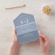 Contemporain, simple, code qr, bleu poussiéreux, moderne, élégant Mariage All in One Invitation. Calligraphie triple, minimum, simple, unique, invitation de mariage moderne. Customisez avec vos détails. Commandez à temps pour éviter une déception.