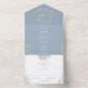 Le tout dans un faire-part de mariage avec une guirlande fleurie décorative et une bordure en or contenant vos initiales monogrammes sur un arrière - plan bleu poussiéreux. L'invitation comprend une carte RSVP perforée qui peut être adressée individuellement ou laissée en blanc pour que vous puissiez écrire à la main les coordonnées de votre invité. Conçu par Thisisnotme©