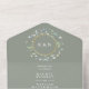 Le tout dans un faire-part de mariage avec une guirlande fleurie décorative et une bordure en or contenant vos initiales monogrammes sur un arrière - plan vert sauge. L'invitation comprend une carte RSVP perforée qui peut être adressée individuellement ou laissée en blanc pour que vous puissiez écrire à la main les coordonnées de votre invité. Conçu par Thisisnotme©