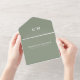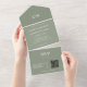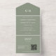 Monogramme vert Sage moderne QR Code RSVP Mariage All in One Invitation
