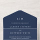 Un modèle tout-en-un unique avec carte rsvp pour une option pratique et économique pour les couples économes en budget. L'invitation moderne mais élégante comprend votre monogramme à deux lettres en haut ainsi que vos détails mariages en blanc sur un arrière - plan bleu marine. Un design chic et design qui conviendra à un couple minimaliste.