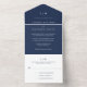 Invitation Tout En Un Monographie bleu marine simple Mariage élégant