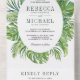 Éblouissez vos invités avec cette élégante invitation de mariage à thème tropical avec typographie moderne et feuilles d'aquarelle rustique avec carte postale RSVP détachable. Ajoutez simplement les détails de votre événement sur ce modèle facile à utiliser et ornez cette carte avec votre photo préférée pour en faire une invitation unique.