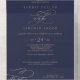 Ce mariage de code QR monogramme de marine et d'or romantique, le tout dans une seule invitation, est parfait pour un simple mariage. Le design classique moderne comprend des tourbillons fantaisistes et des fleurs fantaisistes avec une magnifique typographie de feuille d'or en faux champagne. Écrivez vos adresses d'invités à l'arrière de l'invitation pliée, ou achetez des autocollants de étiquette de adresse d'invités de coordination (vendus séparément).