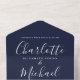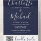 Invitation Tout En Un Navy Blue Elegant Script moderne QR Code Mariage