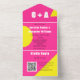 Neon rose chaud, jaune, élégant, rustique, rétro, mariage plié moderne, code QR Mariage le tout dans une invitation. Triplé, ensemble de budgets. Vous pouvez le personnaliser avec vos propres détails.